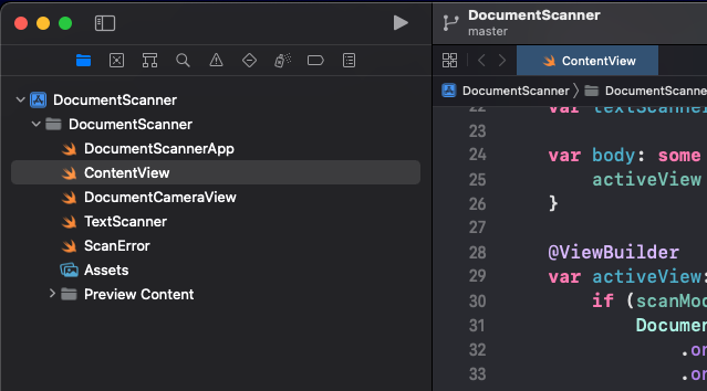 We need DocumentCameraView in order to “wrap” VNDocumentCameraViewController which is a UIKit-class and not native to SwiftUI.